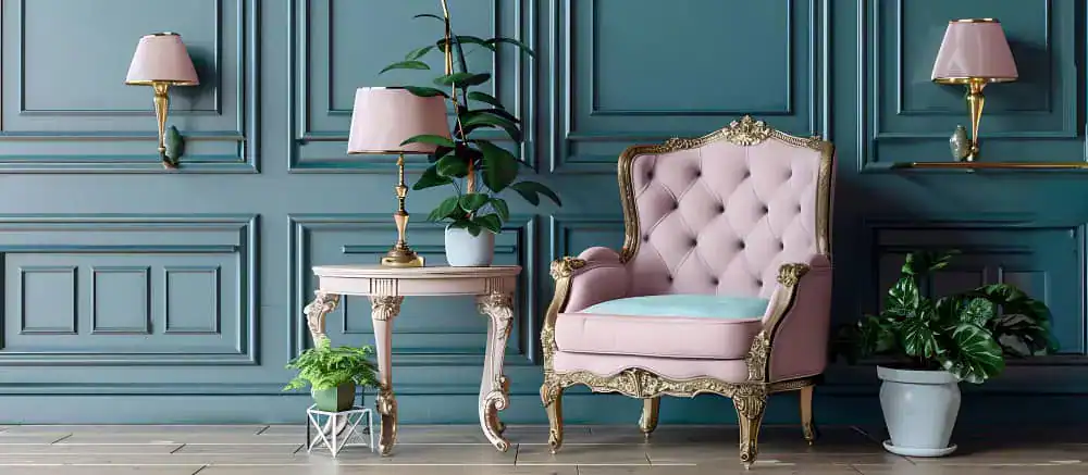 Opulent French Provincial Tufted Armchairs with Gold Leaf Carvings