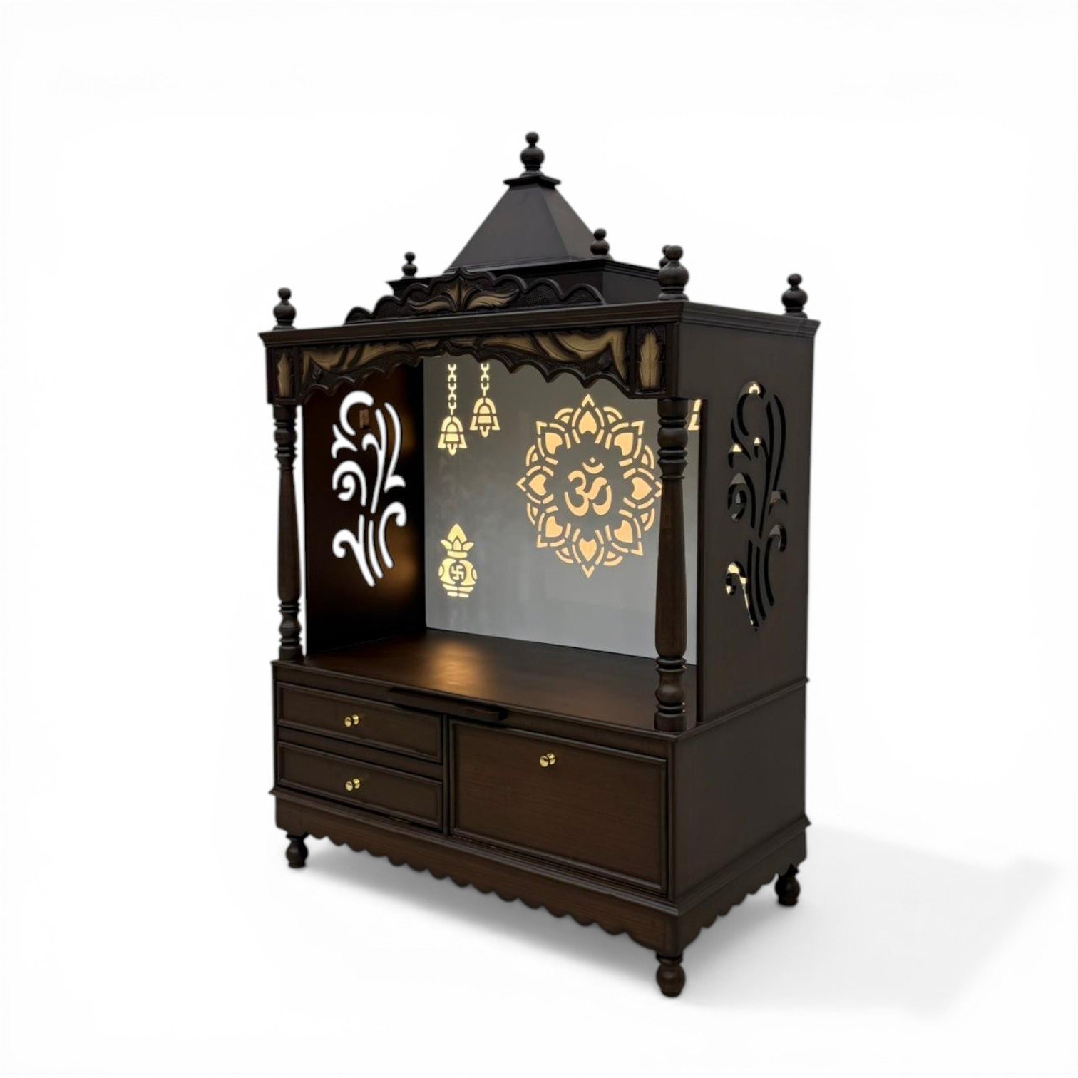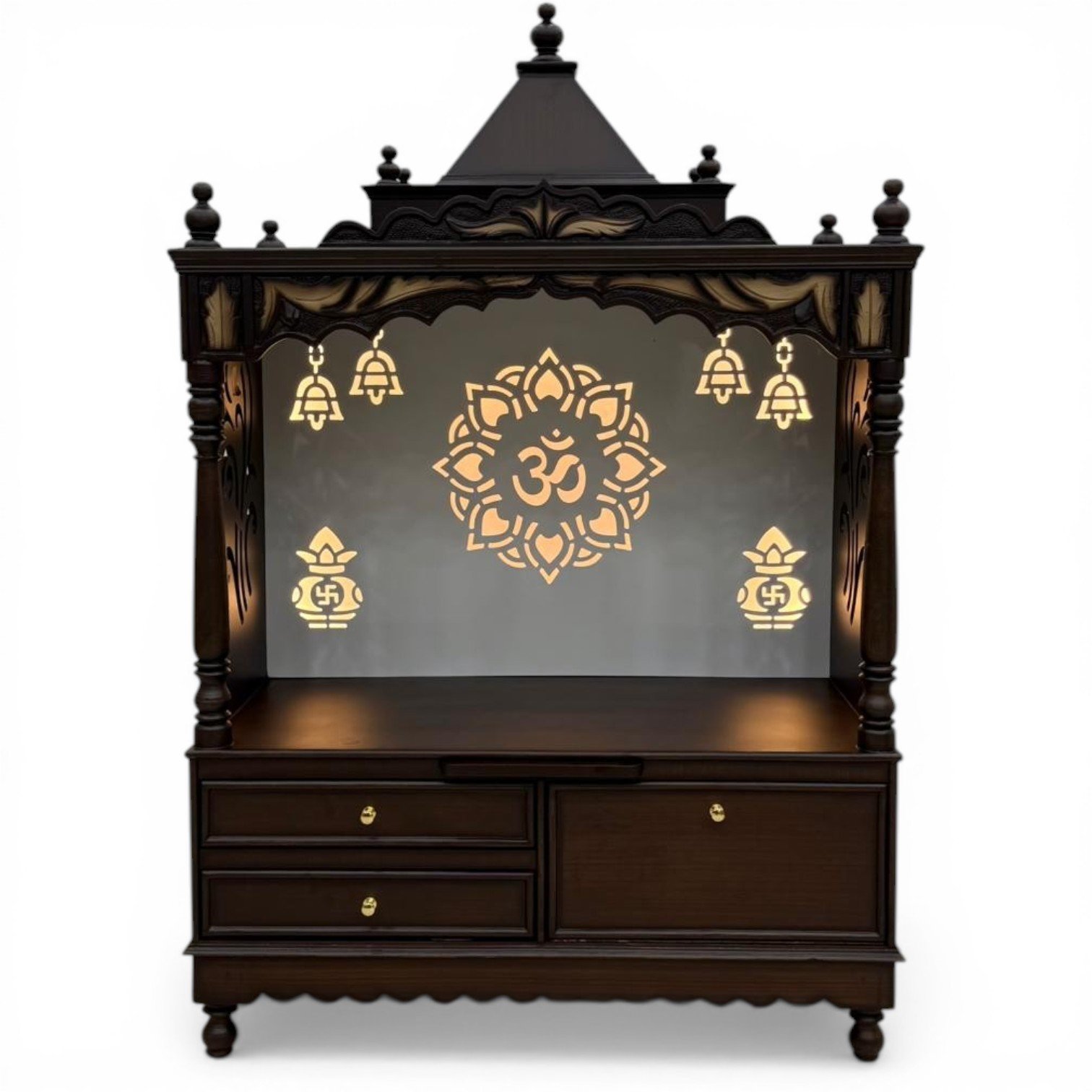 Elegant temple design with detailed craftsmanship and soft ambient lighting—perfect for creating a serene and divine corner at home.