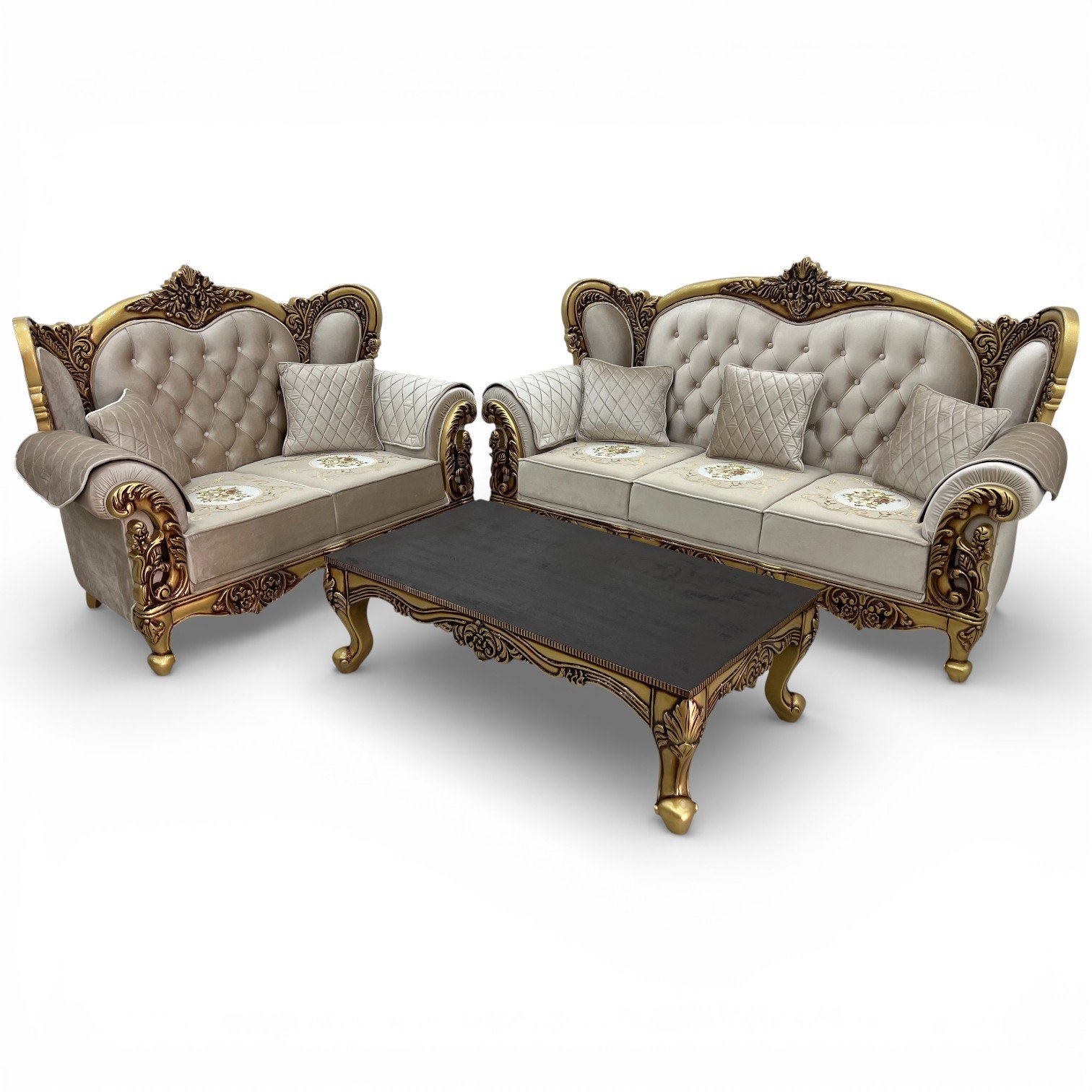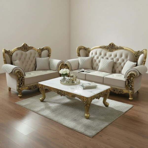 Royal Classic 5-Seater Luxury Sofa Set with Hand-Carved Gold Finish