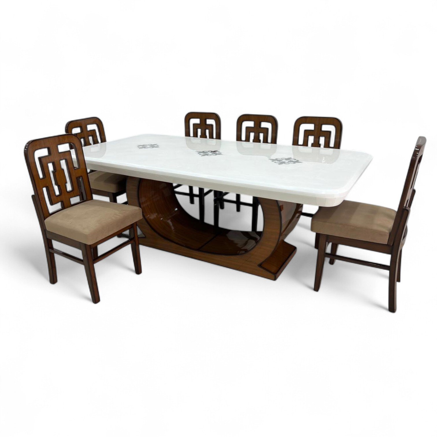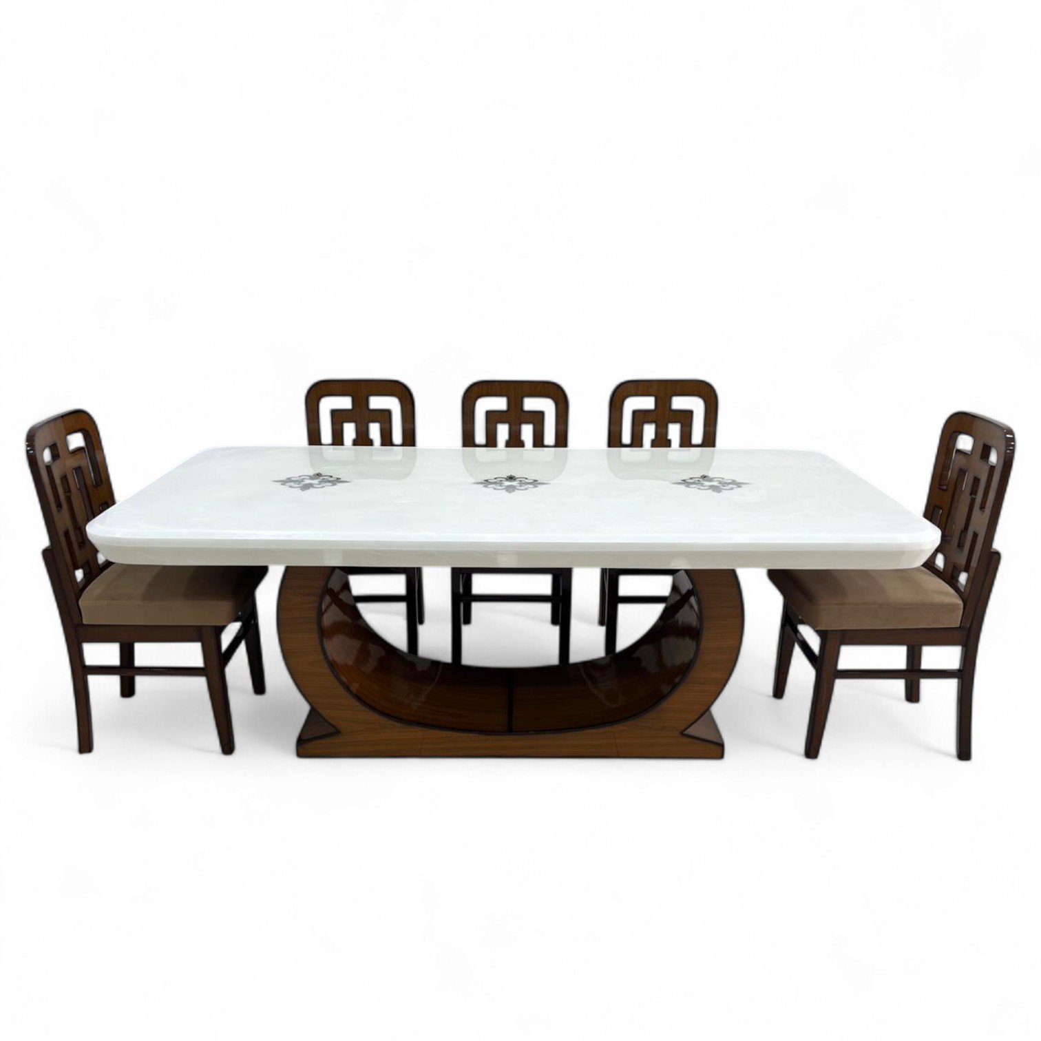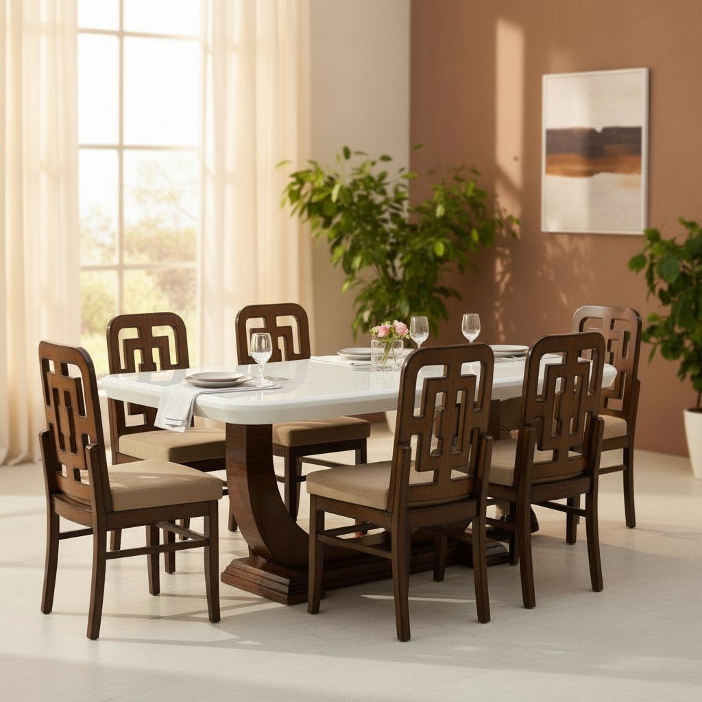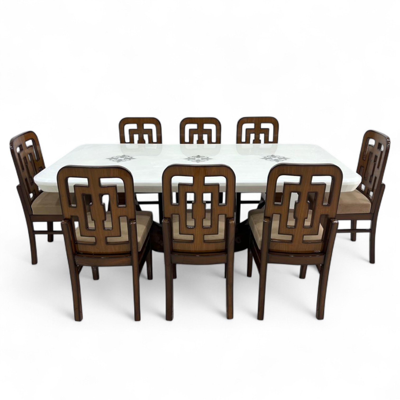 Walnut Finish 8-Piece Dining Set with Marble Top